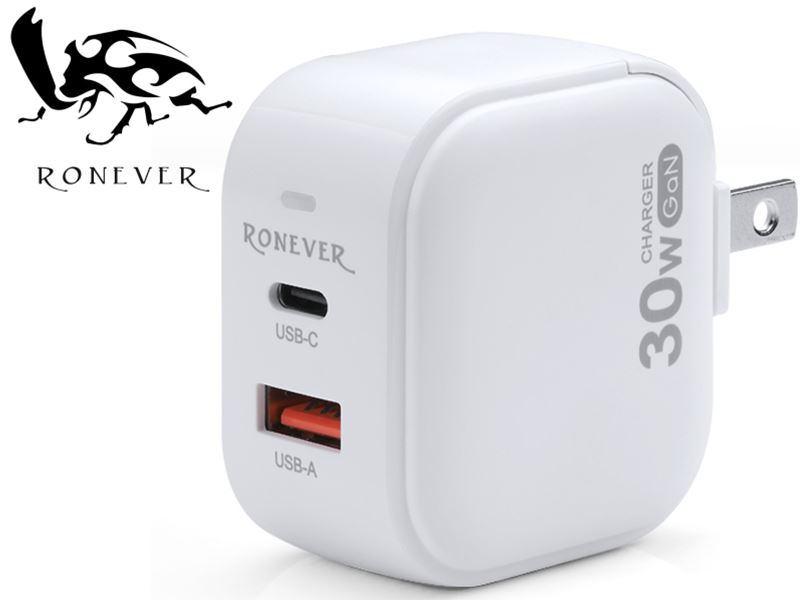 30W氮化鎵GaN雙孔充電器-白 DE055-1