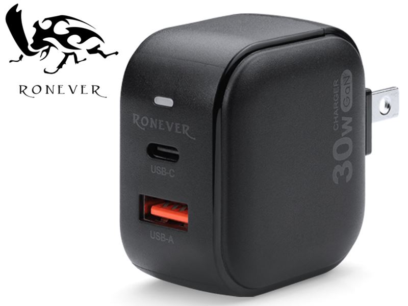 30W氮化鎵GaN雙孔充電器-黑 DE055
