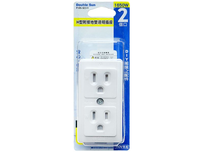 H型附接地雙連明插座15A P-DS-3214K
