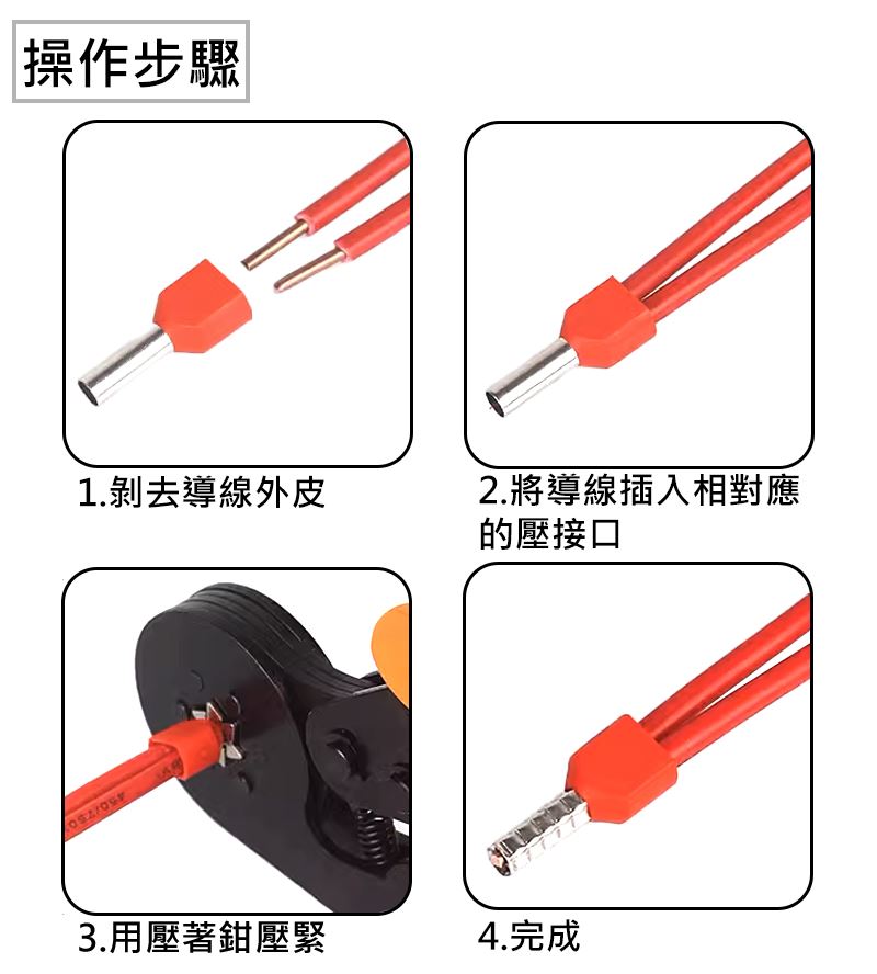 ● 歐式端子也是插拔式接線端子的一種,是端子種類的固定電線接頭之一。一般常用與歐式端子台搭配並使用歐式端子專用壓接工具做壓接。