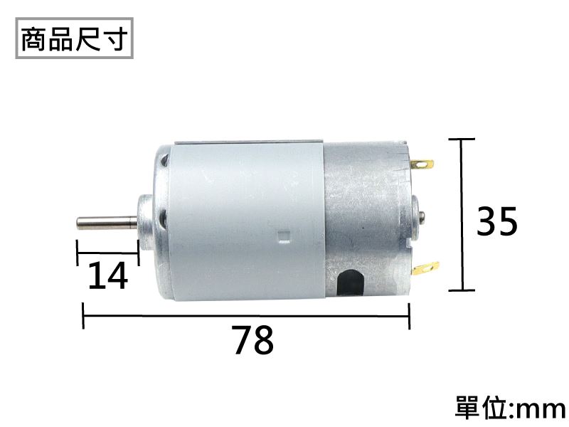 ● 馬達長度:約 78 mm(含軸)