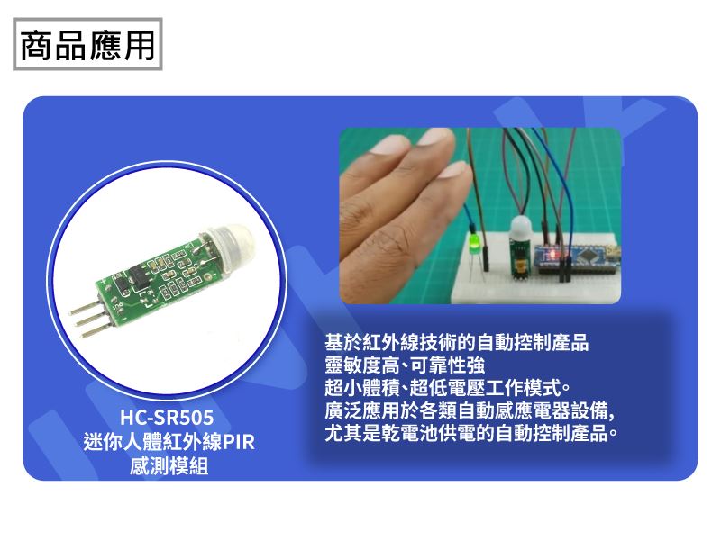 ● HC-SR505 小型人體感應模塊是基於紅外線技術的自動控制產品