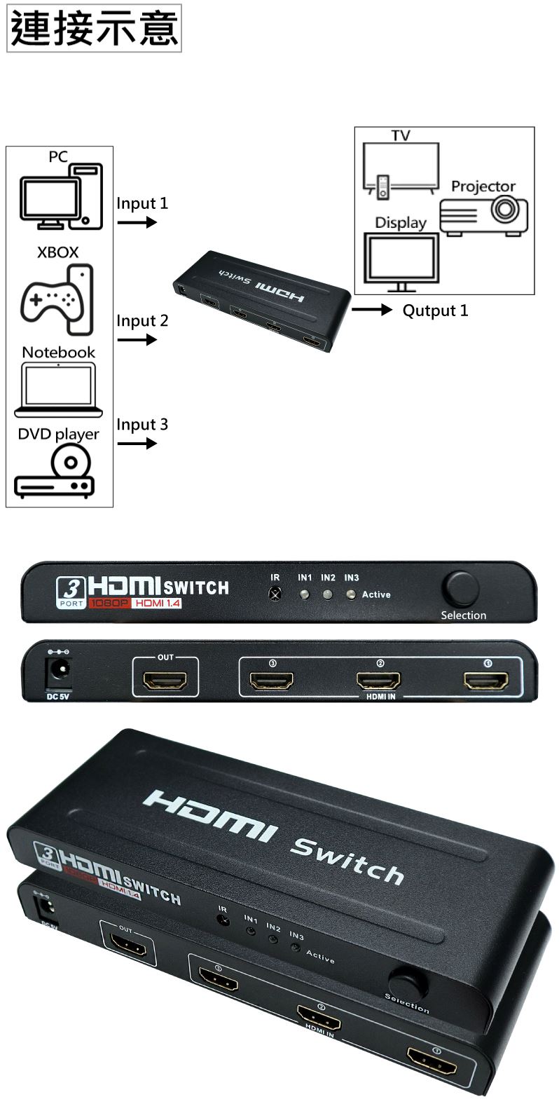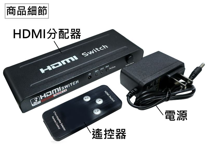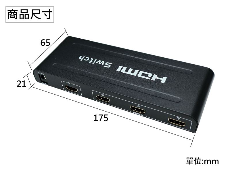 3入1出 HDMI切換器 (含變壓器)JHD-301H