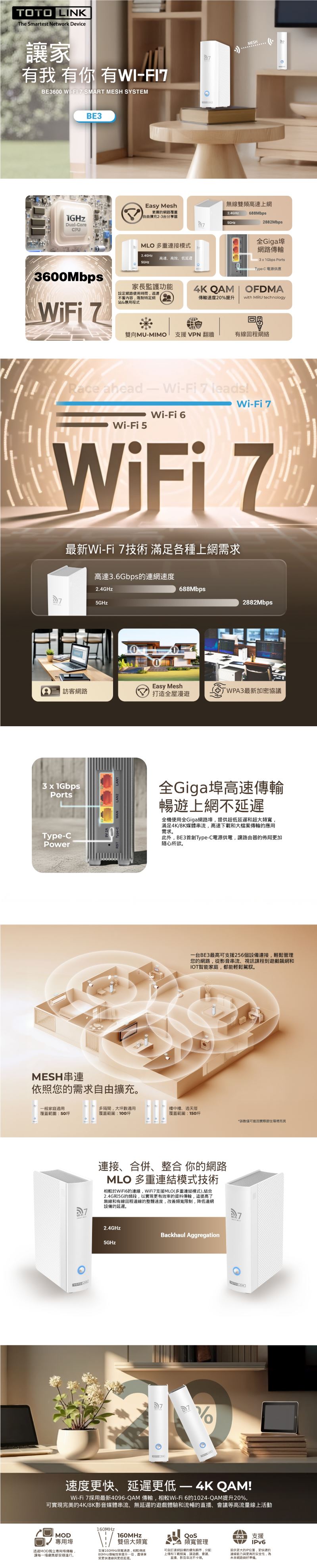 ●WiFi7 BE3600雙頻-傳輸速度 5G 2882Mbps +2.4G 688Mbps。