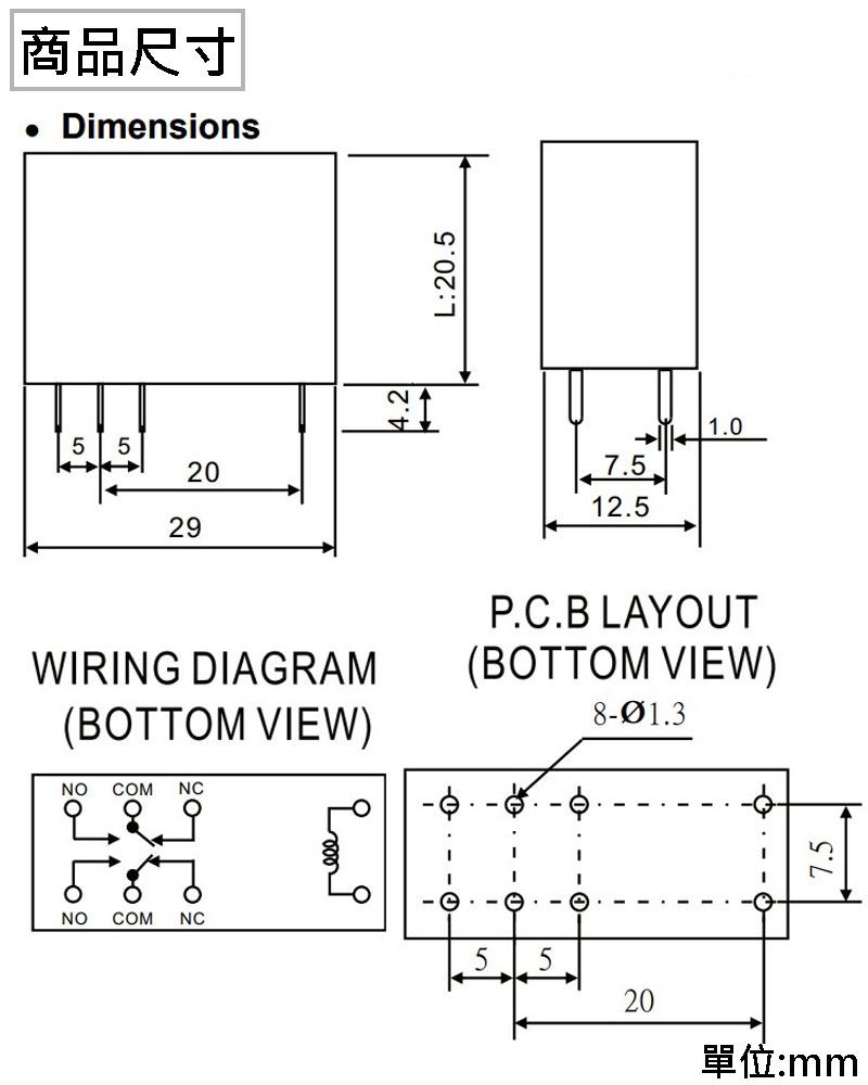 DC12V 8A 2C繼電器(LMR2-12DL)