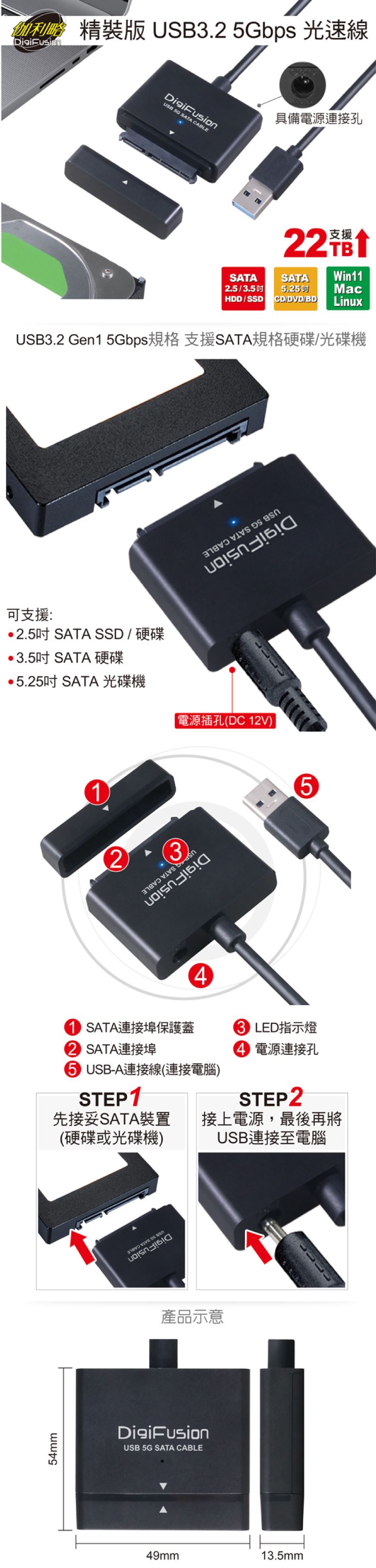 ●支援USB3.2 5Gbps標準(相容USB3.2 10Gbps/USB2.0)