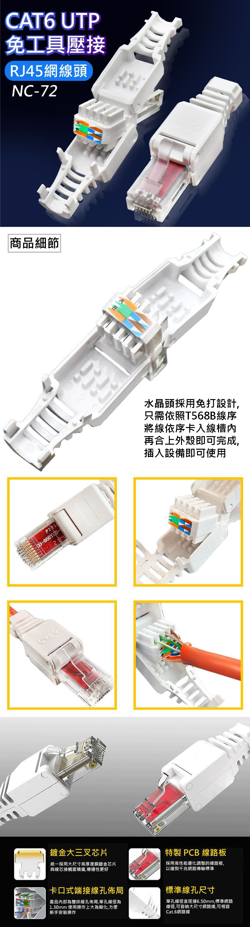 CAT6 UTP 免工具壓接 RJ45網線頭NC-72