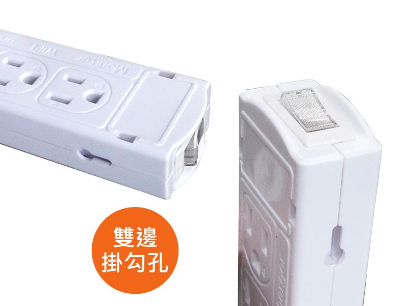 ●一開十插座、雙面共十插座、過載自動斷電保護裝置、180度插頭、雙邊掛鉤孔