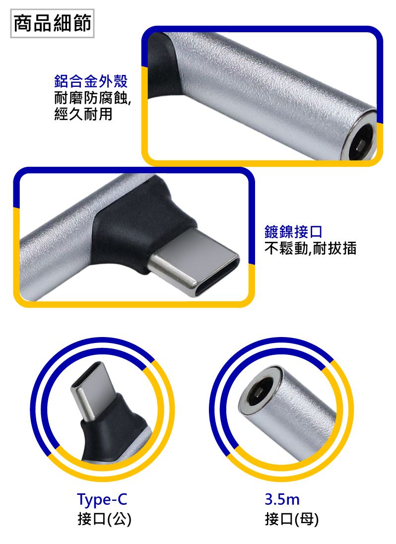 ●接口:Type-C接口 (公)、3.5mm 接口 (母)