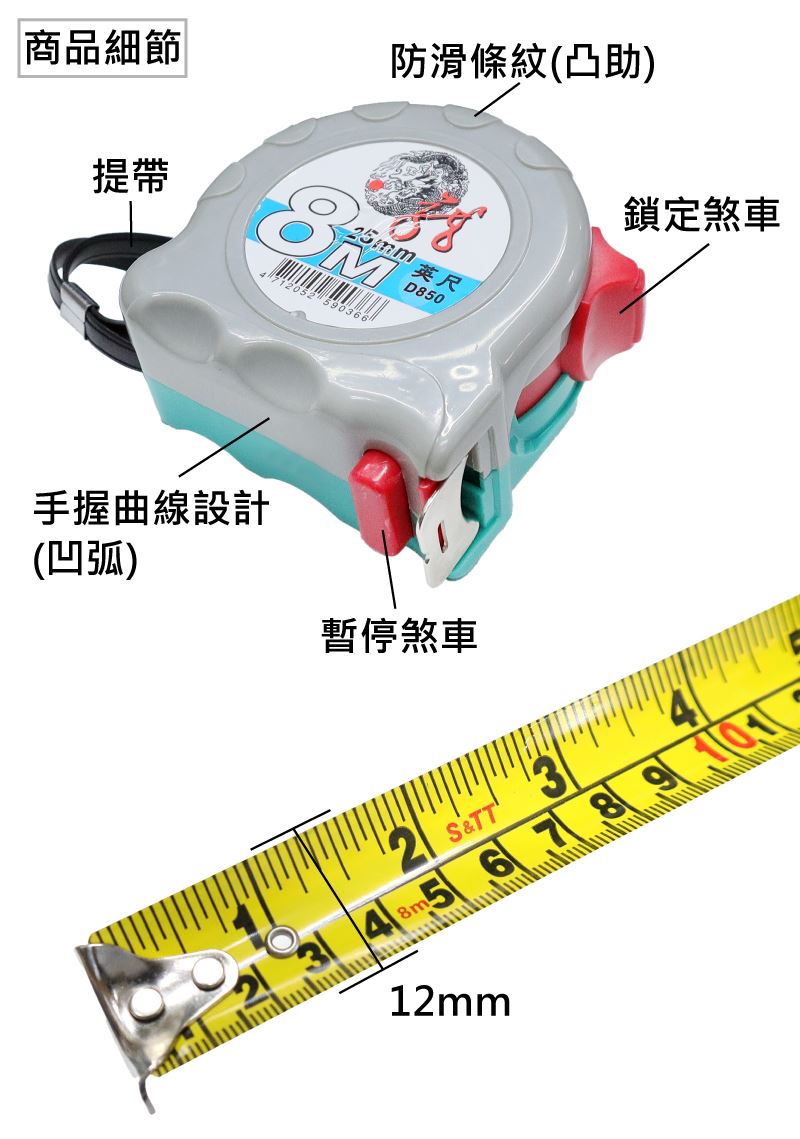 ●專利雙煞車功能,輔助尺帶回捲煞車