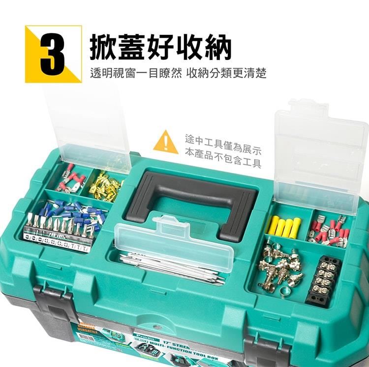 ●上蓋三個獨立零件盒設計,適合存放小零件等