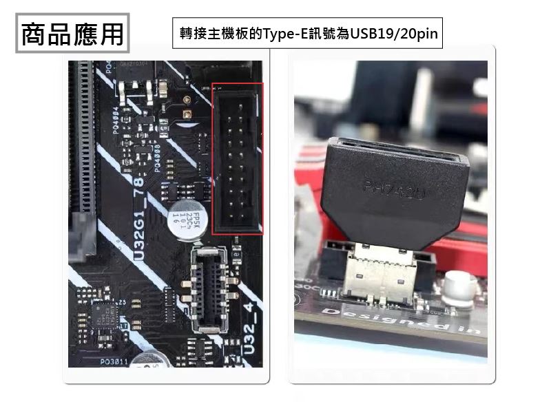 ●將主板TYPE-E或擴展卡TYPE-E接口轉USB 19P接口