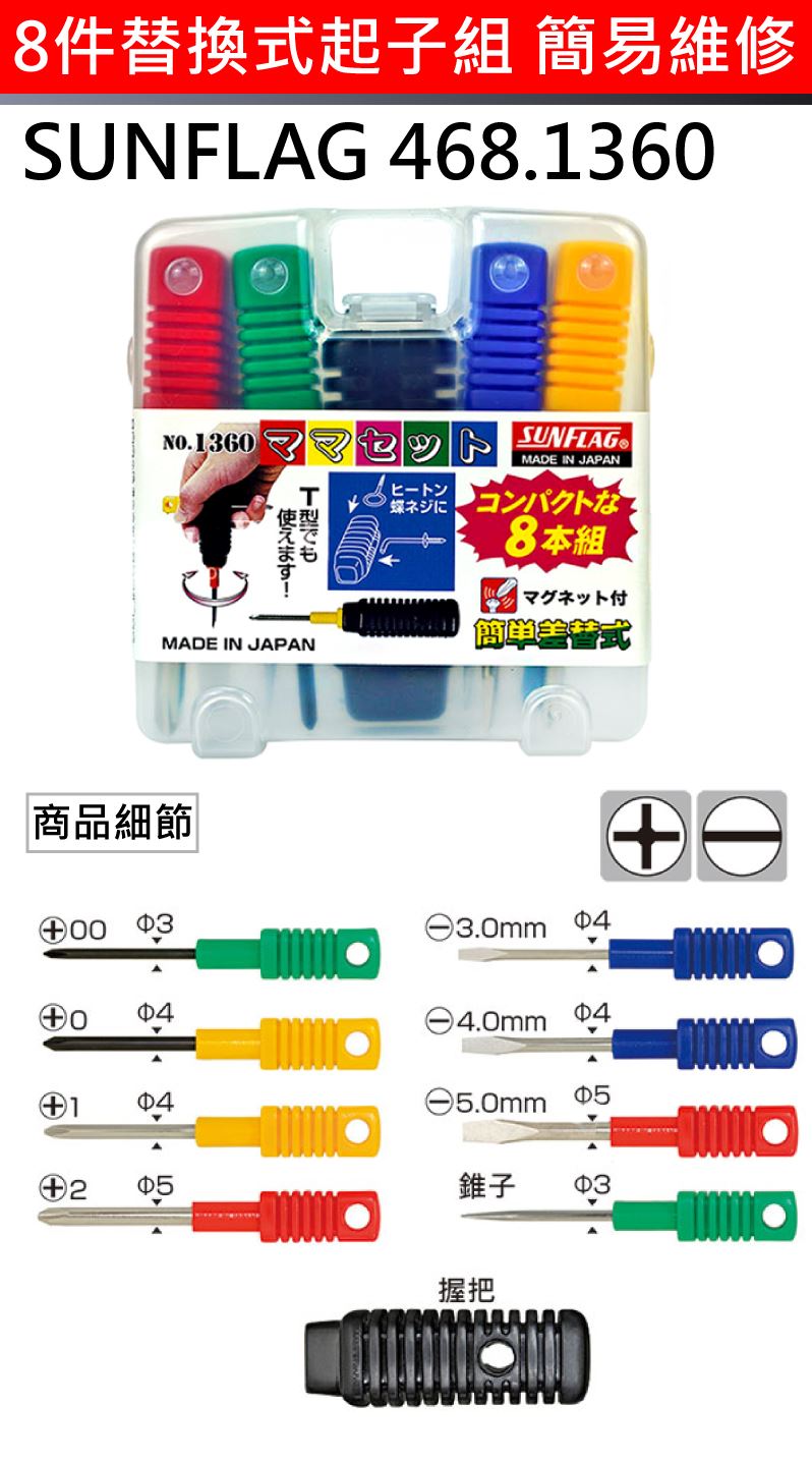 8件替換式起子組 簡易維修SUNFLAG 468.1360