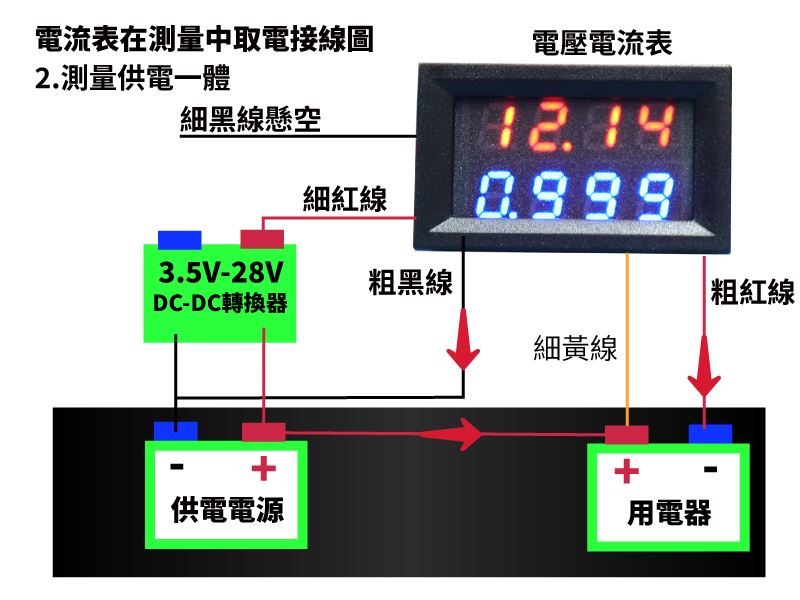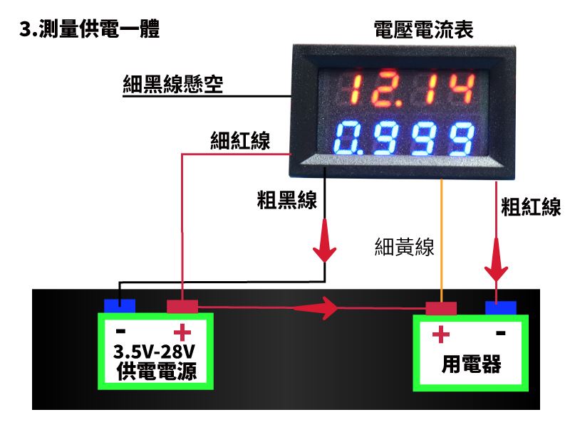 ● 本錶頭僅能量測直流電源,無法量測交流電源