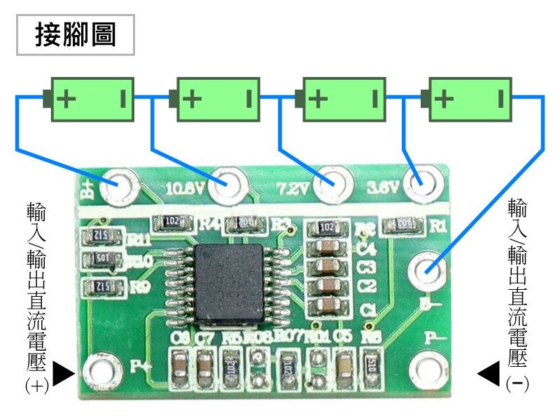 2.裝配完成後,若保護板初始為無輸出的保護裝狀態,請使用相對應電壓的鋰電池充電器充電後,方可恢復輸出