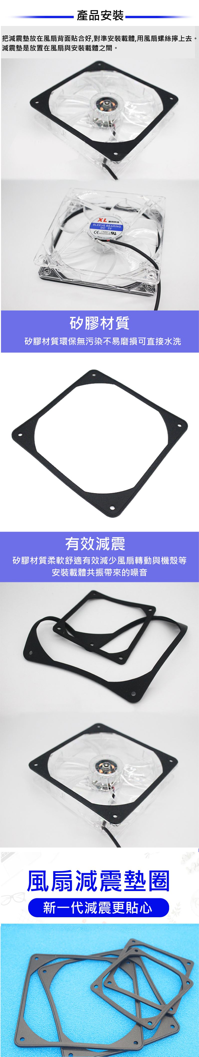 ●吸收風扇高速運轉時產生的微震動,減少震動傳遞到機殼造成共振。