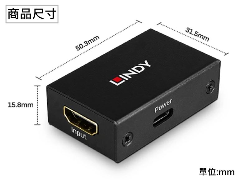 • 解析度4K@60Hz 4:4:4 8bit,輸入7.5m,輸出5m