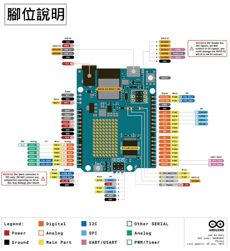 ● UNO R4 保留了與 UNO R3 相同的引腳排列和 5V 工作電壓,確保現有屏蔽或專案無縫遷移到 UNO R4。